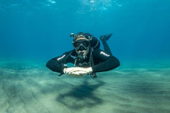 We'll put on a wetsuit, a mask and fins and walk to a nearby beach to get started. Of course, before entering the water we'll review the safety rules and explain some basic theoretical aspects of diving.