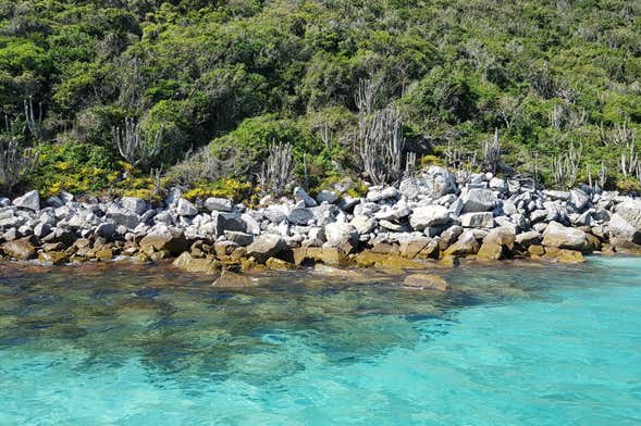 Volveremos al barco y continuaremos surcando las aguas de Arraial do Cabo para conocer lugares increíbles como la cala coralina de Praia do Forno, donde fondearemos durante 20 minutos. Desde aquí, viajaremos hasta la Praia de Pontal do Atalaia, una de las más bonitas de Brasil y donde además se encuentra la Gruta do Amor.