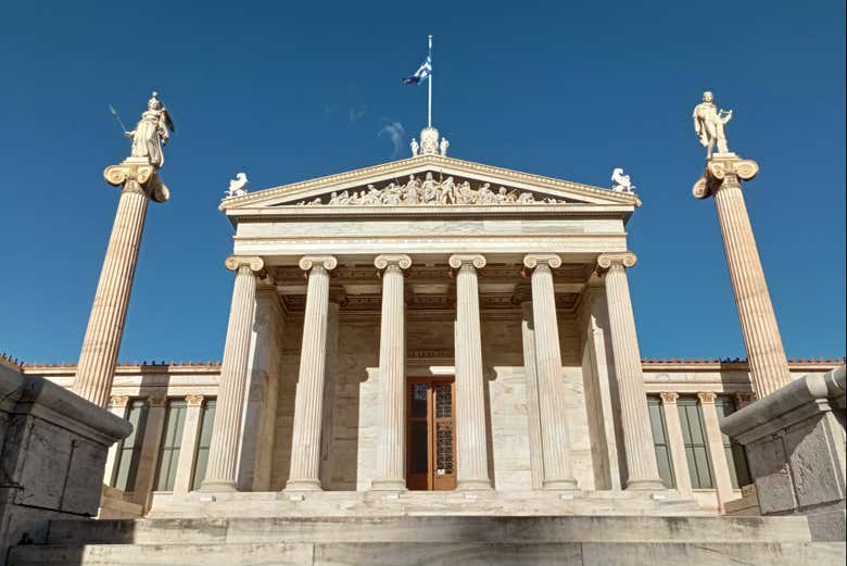 Nuestro tour de la filosofía griega por Atenas comenzará a la hora indicada junto a la estatua de Platón en Panepistimiou, un homenaje al gran filósofo que fundó la Academia y cuyo pensamiento ha influido profundamente en la filosofía occidental. ¿Listos para conocer su vida, sus ideas y su legado? ¡Allá vamos!