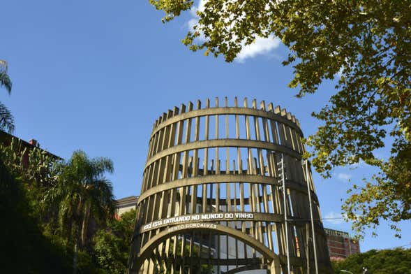 En primer lugar, veremos el Pipa Pórtico, la puerta de entrada a la ciudad. ¿Queréis saber por qué tiene forma de barril? Una pista: Bento Gonçalves es denominada la capital del vino de Brasil.
