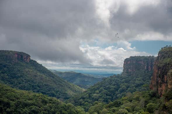 Abordaremos los vehículos 4x4 y, al llegar a la primera parada, realizaremos un tranquilo paseo por la zona. ¡Os vais a enamorar de los paisajes del Parque Nacional Chapada dos Guimarães! Además, llegaremos hasta la cima de una de sus peculiares formaciones rocosas, desde donde podremos ver los acantilados en el horizonte.