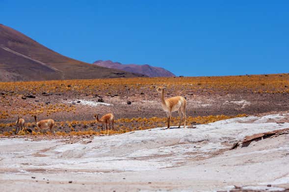 Además, la población autóctona nos mostrará cuáles son las principales características de la cultura aymara de la zona. Haremos también una pausa en un restaurante del parque para tomar un almuerzo que incluye tres platos de la gastronomía local.