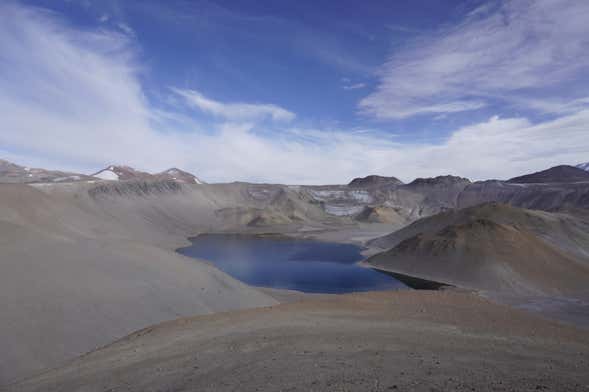 Tras saciar el apetito, bordearemos el río Veladero hasta el Monte Pissis, a más de 6800 metros sobre el nivel del mar. ¡Es el segundo pico más alto de América! Por fin, estaremos cerca de la Corona del Inca, un cráter situado a 5500 metros de altitud donde nos espera un lago formado por las aguas del deshielo.
