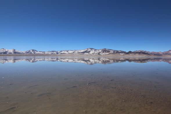 Nada más llegar, tomaremos un snack que incluye una barrita energética, frutos secos, fruta y una infusión, a elegir entre té o café. Tras coger fuerzas, emprenderemos una caminata de 1 kilómetro por este asombroso salar situado a 4000 metros sobre el nivel del mar. La elevada altitud dota a estos paisajes de una singular belleza que sin duda os cautivará.