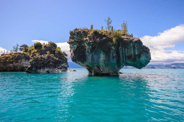 Comenzaremos este paseo en barco por la costa de Puerto Tranquilo bordeando las cavernas y cuevas de mármol. Desde la embarcación, veremos cómo los tonos grisáceos y azulados se fusionan a la perfección en estas grutas lacustres. Todas ellas forman parte de un gran espacio protegido que, debido a su excepcional valor medioambiental, en 1994 fue declarado Monumento Nacional de Chile en la categoría de Santuario de la Naturaleza.