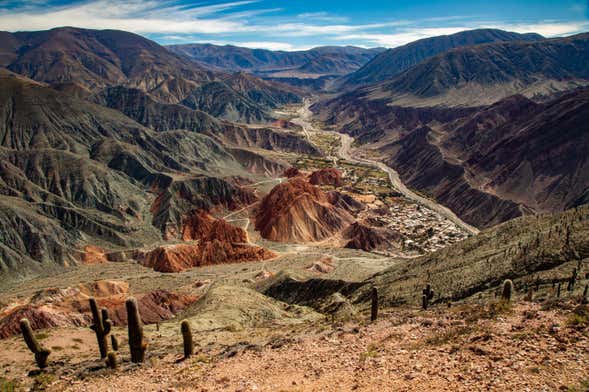Comenzaremos la ruta de senderismo recordando las guerras calchaquíes. Estos episodios bélicos, que tuvieron lugar a mediados del siglo XVI, enfrentaron a los españoles con varios pueblos indígenas como el de los humahuacas, cuyo líder era Viltipoco. Tras la caída del imperio de los incas, este comandante logró resistir en las montañas de colores de Purmamarca durante 60 años.
