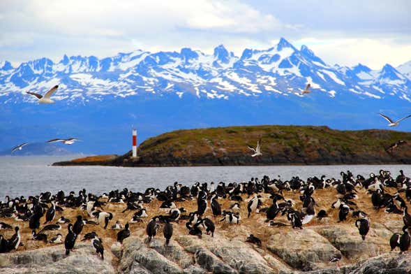 Continuaremos la ruta en yate por el Canal Beagle en dirección este para divisar desde la embarcación el diminuto islote en el que se encuentra el faro de Les Éclaireurs, un auténtico símbolo de Ushuaia. Desde aquí observaremos también una importante colonia de cormoranes.