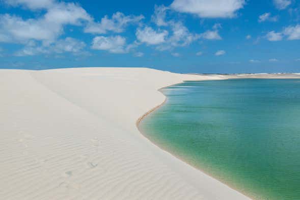 À l'arrivée, vous changerez de véhicule pour monter à bord d'un 4x4 et commencer un voyage à travers le parc national de Lençóis Maranhenses pour vivre une aventure palpitante dans les hautes dunes. Nous ferons des arrêts stratégiques à certains endroits, comme les lagunes de Gaviota et d'Andorinhas, où vous pourrez vous baigner dans ces lacs cristallins.