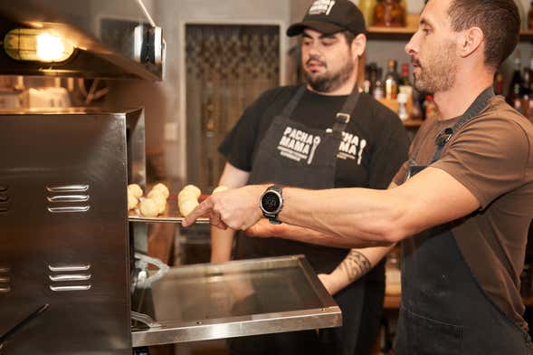 - Chipá avec sauce barbecue et sauce piquante fermentée.