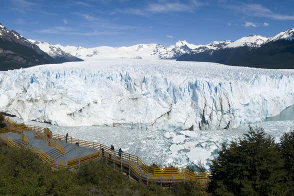 Une fois sur place, vous pourrez marcher sur les différents sentiers qui mènent aux miradors du site, au pied desquels vous serez fascinés par l’imposante beauté du Glacier Perito Moreno. Nous vous recommandons de vous promener sur les passerelles en bois qui surplombent ce géant de glace. De ce point, vous pourrez entendre le bruit de la glace qui se fissure et, si vous avez de la chance, voir les blocs tomber dans l'eau.