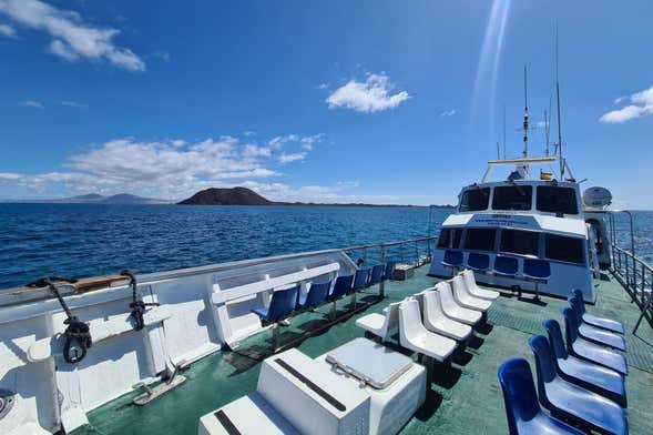 Entre 8h20 et 9h20, nous viendrons vous chercher à votre hôtel dans le sud de Fuerteventura et vous vous conduirez en minibus à l'embarcadère de Corralejo. À 11h00, vous embarquerez sur le ferry pour une agréable traversée de 20 minutes vers le parc naturel d'Islote de Lobos.