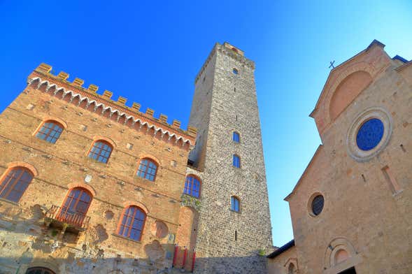 Vous poursuivrez la visite guidée en admirant l'extérieur du Palazzo Comunale, qui a un lien très particulier avec le célèbre poète florentin Dante Alighieri. Nous vous dévoilerons les détails en admirant la façade de la collégiale de l'Assomption de Marie, flanquée de la tour Grossa, la plus haute tour de San Gimignano.