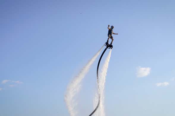 Pendant 20 minutes, vous pourrez faire des slaloms sur la mer, planer, sauter et même faire des pirouettes. Il n'est pas nécessaire d'être en très bonne condition physique. Il suffit de se laisser propulser par un canon à eau qui vous permettra d'atteindre une hauteur de 12 mètres.