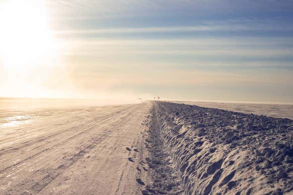 Nous viendrons vous chercher à votre hôtel à Yellowknife et nous vous amènerons sur les rives du lac Great Slave. En hiver, quand il gèle, la célèbre "route de glace" se forme. À vous de la découvrir !