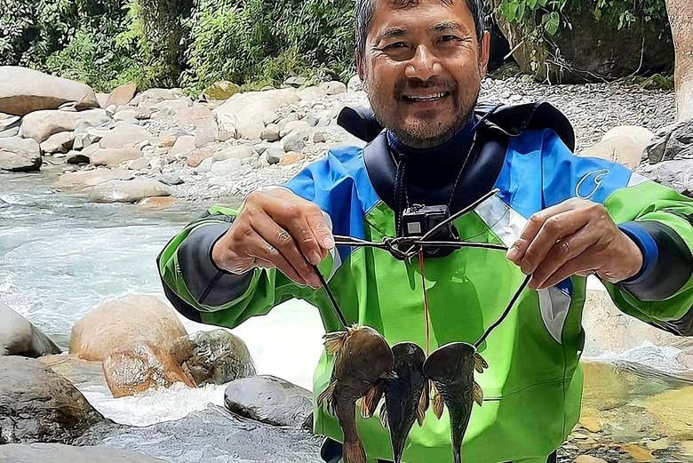 All'ora indicata verremo a prendervi in hotel a Baños per dirigerci verso la Riserva del fiume Zuñac. Una volta arrivati, vi forniremo l'attrezzatura necessaria per camminare nel fiume e cercare i famosi carachamas e pesci gatto andini.