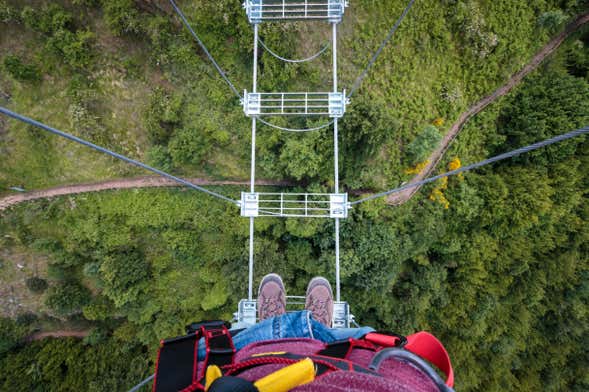 Contempleremo la rigogliosa vegetazione di pumamaqui, polylepis, mogano, cedro o alberi di guayacan, mentre saremo sospesi a 170 metri di altezza e, sotto i nostri piedi, vedremo il fiume Blanco della provincia di Tungurahua. Sarà un'esperienza unica!