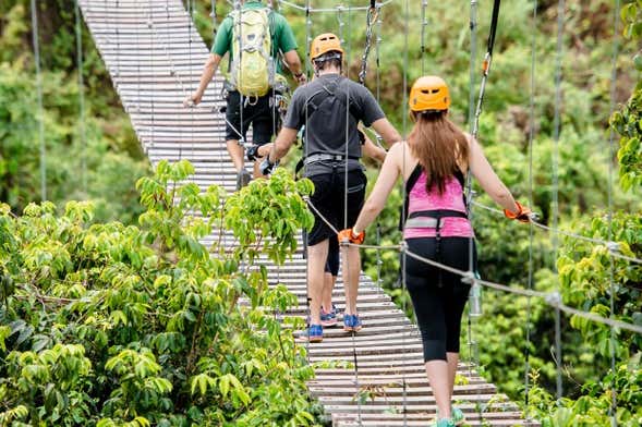 Dopo un conciso briefing sulla sicurezza, indosseremo l'attrezzatura e ci incammineremo verso l'area in cui ci aspettano diversi ponti sospesi. Durante l'escursione, avremo una magnifica vista sulla foresta tropicale portoricana in tutto il suo splendore.