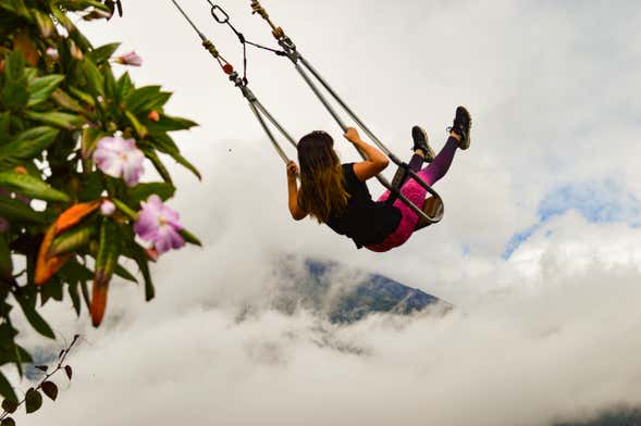 In seguito, visiteremo l'altalena Fantasías de Volar, alta oltre sessanta metri, da cui potrete contemplare una vista vertiginosa sulla città di Baños de Agua Santa.