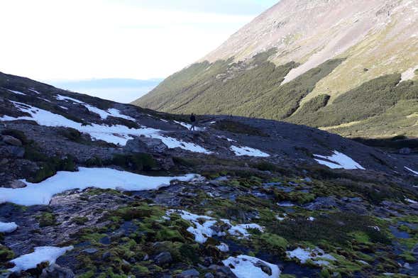 Durante il trekking, costeggeremo la vecchia pista da sci, attraverseremo le foreste fuegine e vedremo il fiume formato dallo scioglimento del ghiacciaio. Lungo tutto il percorso troveremo zone piene di roccia e ghiaccio, ma riusciremo a superarle senza problemi grazie alle indicazioni degli esperti che ci accompagneranno.