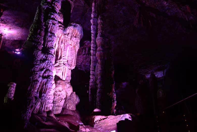 Ao entrar nessa gruta, nossos olhares ficaram impressionados com as cachoeiras ou cortinas de pedras que escorrem pelas paredes em seus diferentes salões. Mas o que mais chamará sua atenção serão as colunas esculturais únicas que se formam pela união das estalagmites com as estalactites. Você vai adorar!