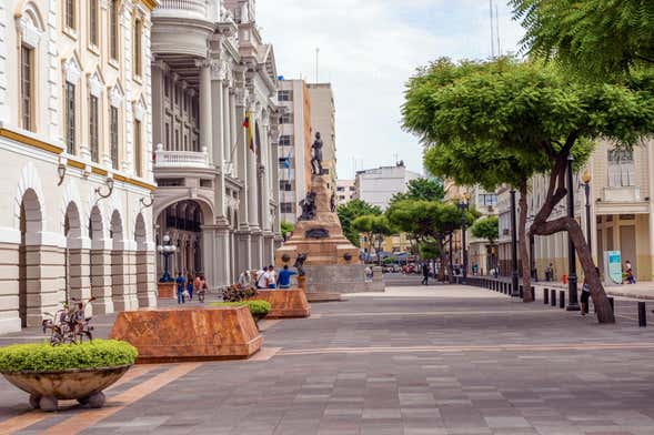 Continuaremos o tour percorrendo a avenida 9 de Outubro até chegar ao cais de Guayaquil, uma área de lazer e de passagem junto ao rio Guayas.