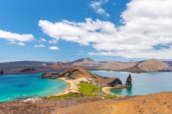 Passaremos para buscá-lo no seu hotel de Puerto Ayora na hora indicada e iremos levá-lo ao canal de Itabaca para subir a bordo de um iate com o qual navegaremos pelo mar durante duas horas e meia até a Ilha Bartolomé.