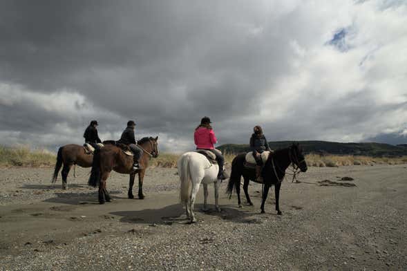 Durante o passeio a cavalo, chegaremos a um mirante com vista para o Estreito de Magalhães e a ilha Grande da Terra do Fogo. Você não vai conseguir parar de tirar fotos! Mais tarde, desceremos até chegar novamente à baía. Você vai se surpreender com os caminhos repletos de vegetação e com as esplanadas por onde passaremos.