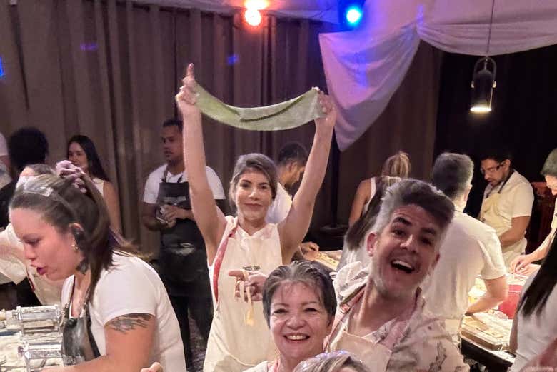 Em seguida, será explicado o funcionamento das atividades e começaremos a oficina de massas. Mãos à obra! Durante o jantar, você poderá degustar um menu com quatro tipos de massas, duas saladas e uma sobremesa. Simplesmente delicioso!
