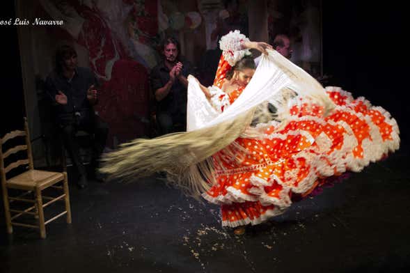 Através de um pátio de azulejos sevilhanos, você entrará no Teatro Flamenco Triana, um local dedicado ao canto, à dança e à guitarra. Na hora indicada, os primeiros acordes da guitarra começarão a soar. Inicia o show!